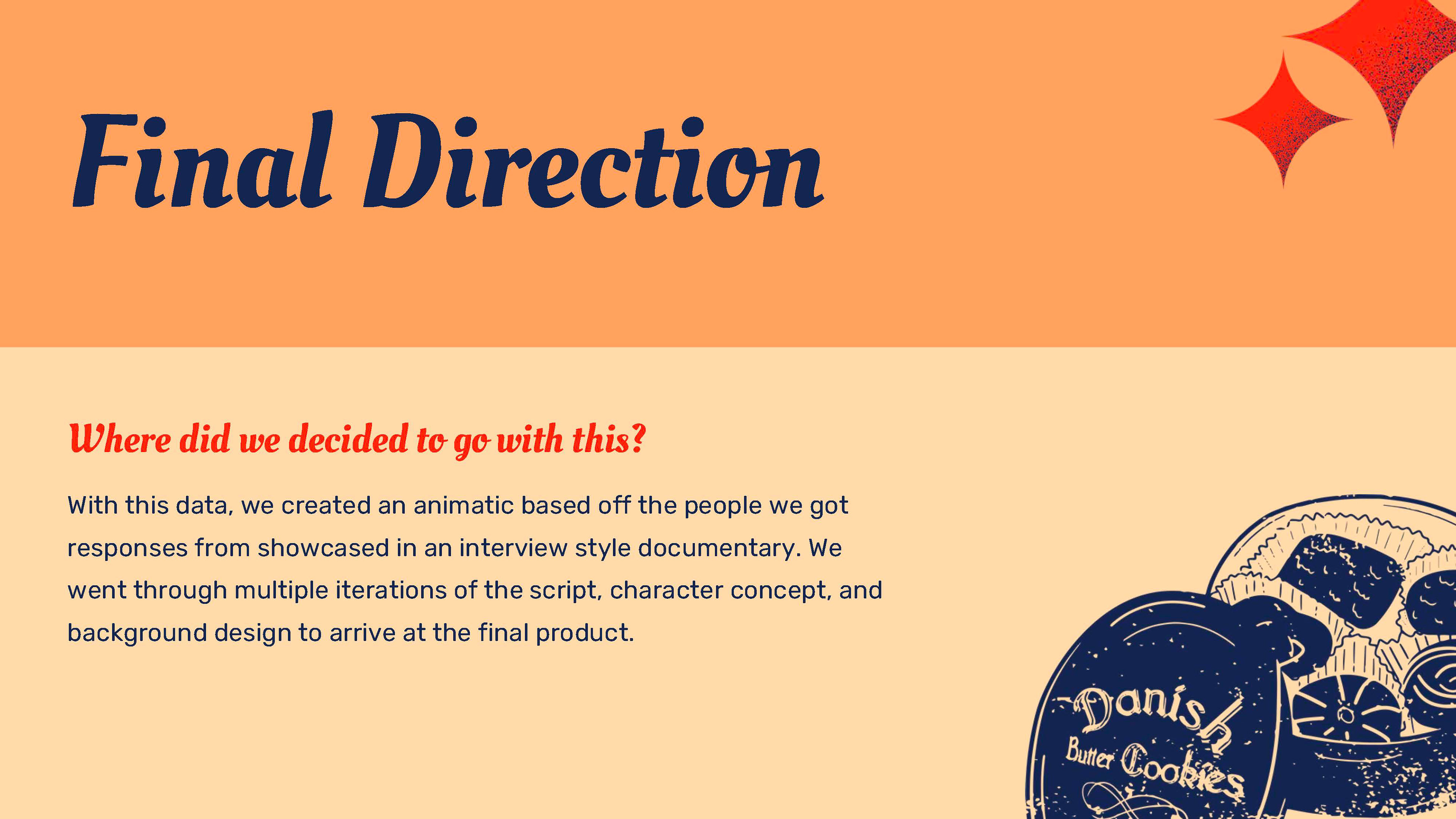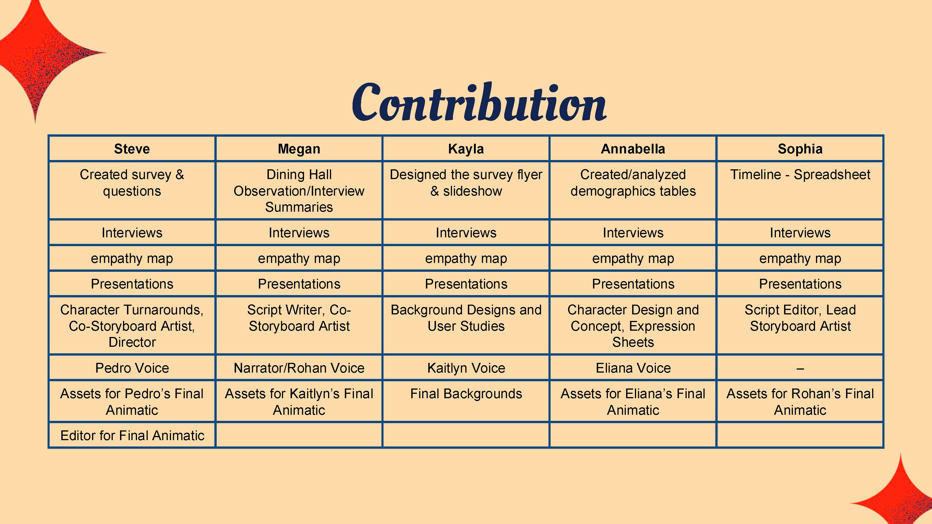 In addition to my visual contributions, I also served as a voice actor and helped shape the final script. This project pushed me to balance creative leadership with flexibility and taught me the value of storytelling through both visuals and voice.